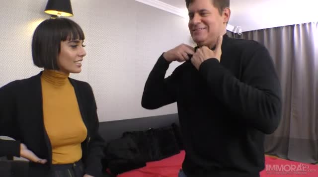 French newbie Mylene Johnson gets facial and cum on ass after MMF threesome