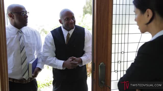 Busty blonde London Laurent gets wet and horny when her friend's husband plays with her big titties!