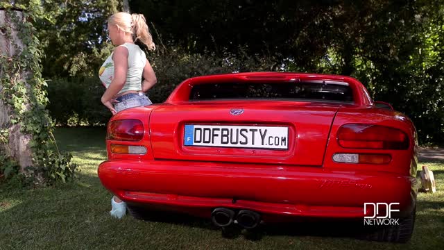 Airbags On The Hood Busty Blonde's Big Tits Exposed!
