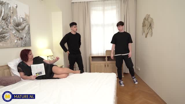 A sexual education old & young threesome with 62 year old granny Mia and her stepgrandson and friend