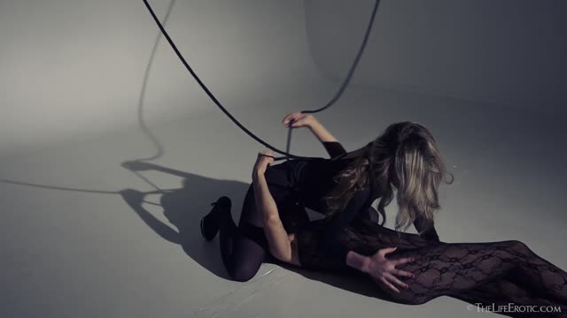 Young cute bitch Nicolette Noir first time in studio. DP, 1 position DAP