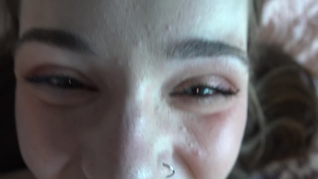 Jade's Sensual pantyhose Blowjob and big Mouthful of Cum!