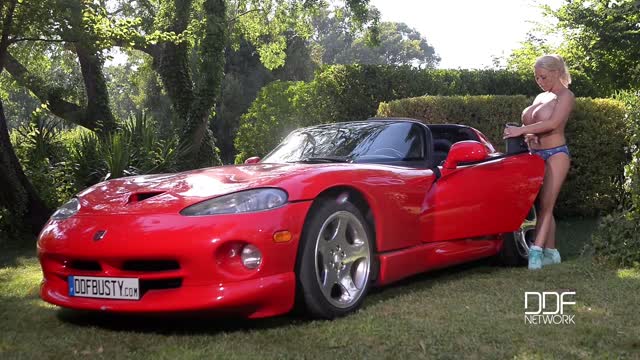 Airbags On The Hood Busty Blonde's Big Tits Exposed!