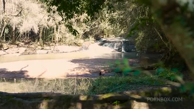 Tropical Gangbang of a Horny Little Slut: Akina Asmus Gets Hard DP and Total Anal Destruction Under the Waterfall from Four Massive Cocks