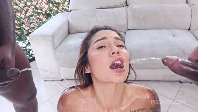 The cocks sheath themselves balls deep from both ends and attempt to shake hands in the middle. Anikka gamely gives it her best. All 10 inches of BBC disappear down her facepussy, owning her throat hole. Long after most girls would be sputtering and begging for mercy, Anikka hangs in there. This only inspires us to pick up the pace.